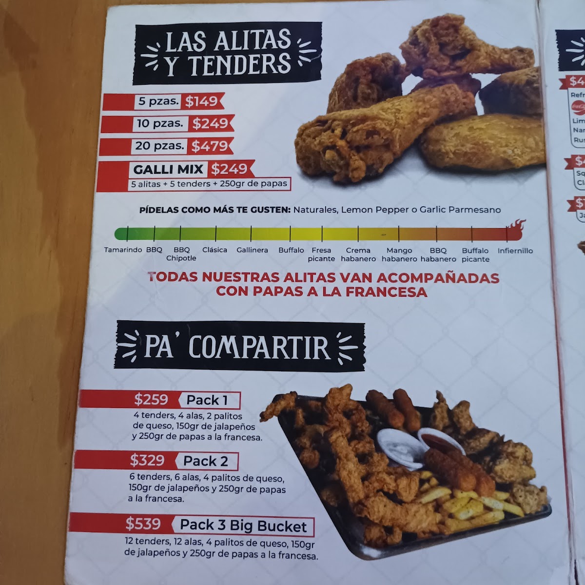 Whether you're in the mood for a classic hamburguesa americana loaded with beef, American cheese, and bacon or a flavorful hamburguesa hawaiana topped with pineapple, every bite is an explosion of flavor. Their wings, particularly the alitas, are equally enticing, featuring crispy options such as las alitas con papas and tantalizing mixing plates like the Galli Mix.